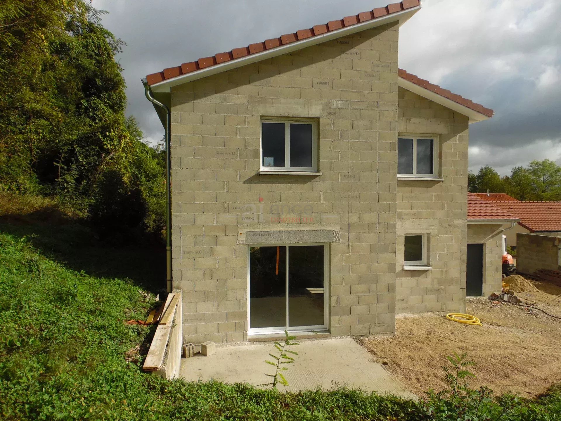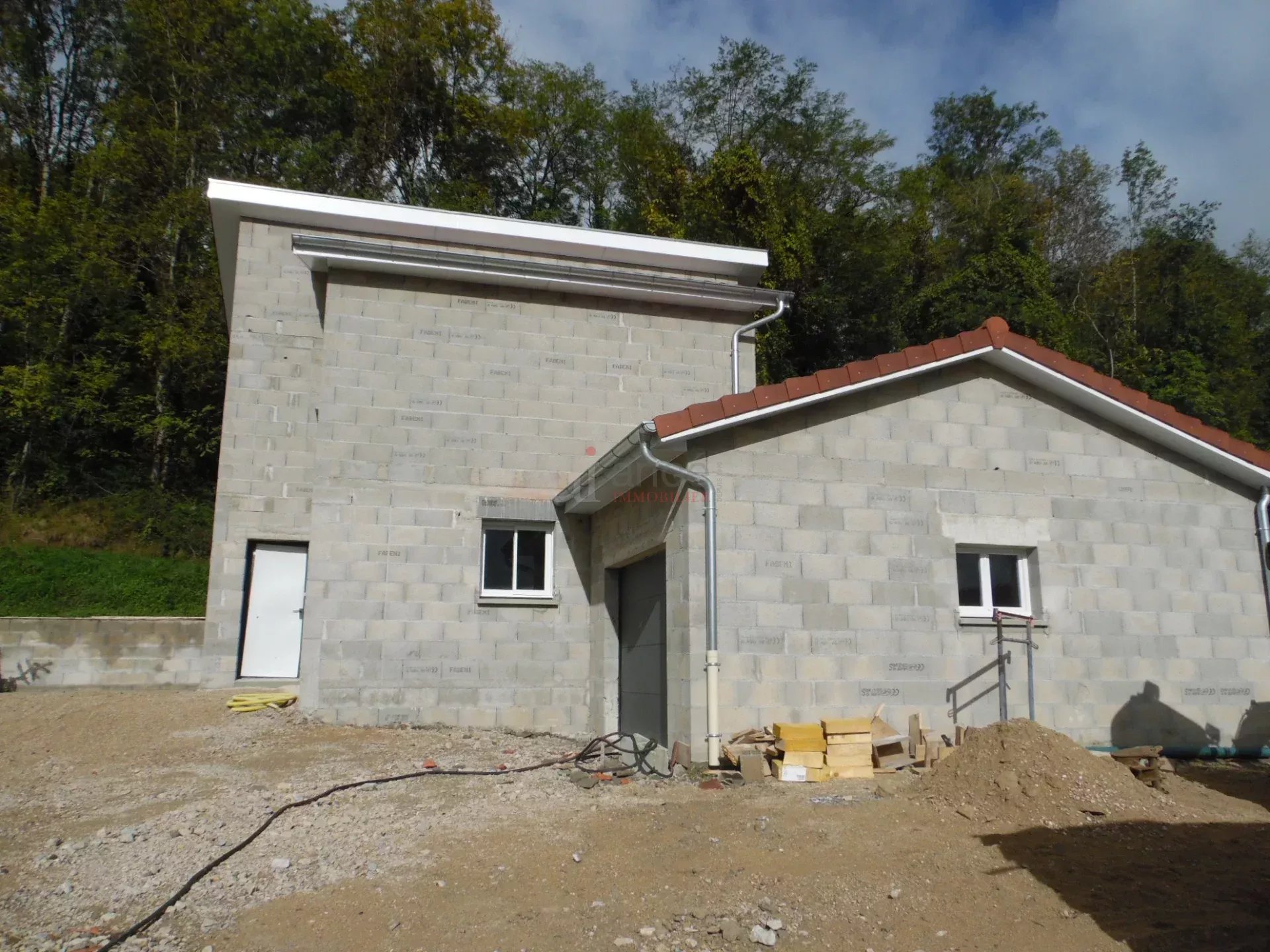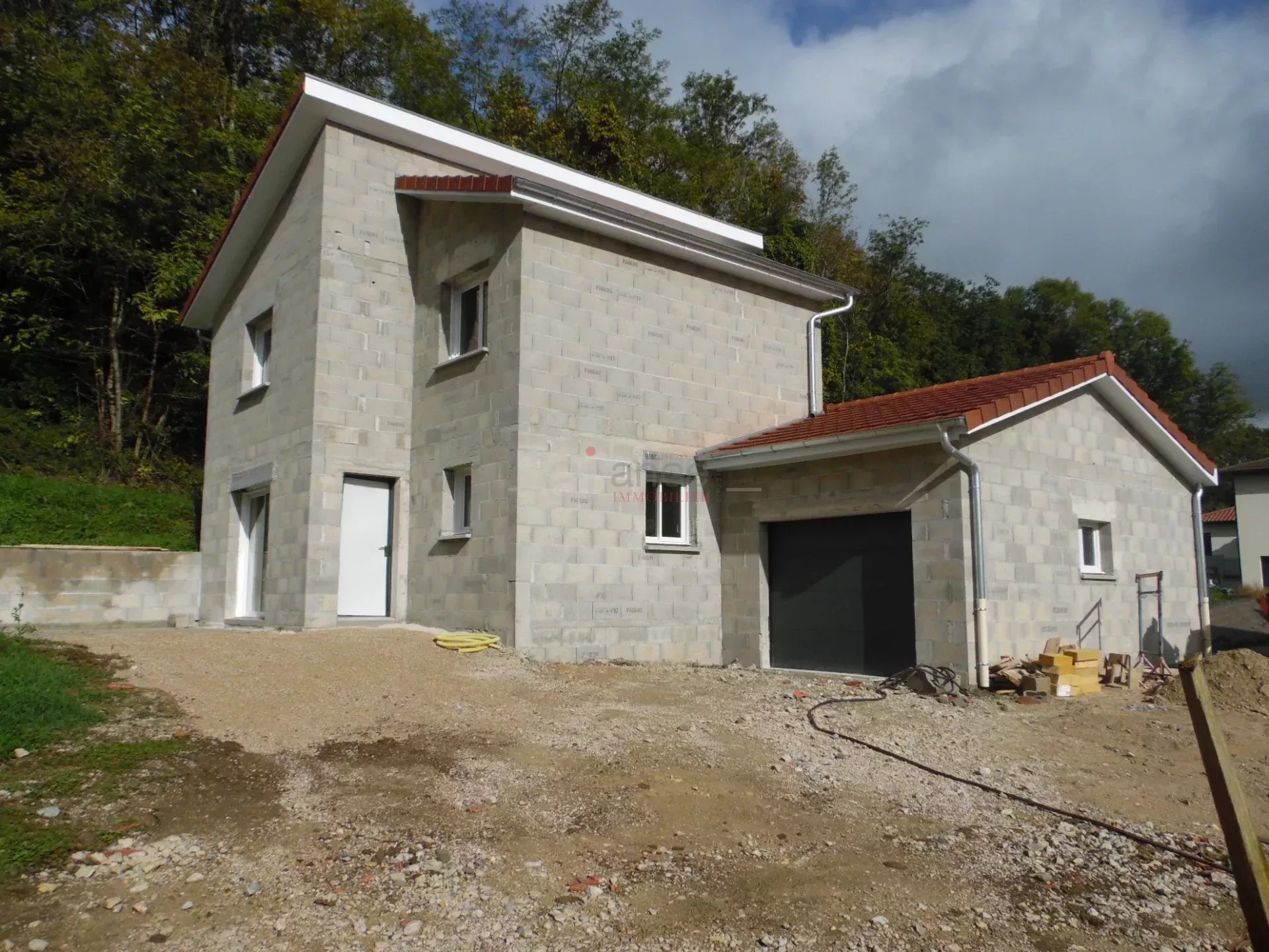 A 10mn d'Amberieu en bugey, Maison de 105 m2 sur terrain de 500m2n comprenant au RDC : séjour donnant sur terrasse, cuisine, toilettes/buanderie, à l'étage 3 chambres, salle de bains , WC, dressing, garage de 27 m2,chauffage au sol, climatisation, radiateurs électriques à l'étage, volets roulants électriques, chauffe-eau thermodynamique, maison disponible premier trimestre 2026.frais de notaire réduit! 2,4%